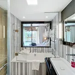 Chalet Migui Luxury Living & Spa, Crans Montana comprises a balcony, a terrace, and a dressing area furnished with a sofa set featuring such comforts as an ironing set. With a TV set available, the accommodation allows guests to enjoy their leisure time to the fullest. The property also offers a private bathroom fitted with a separate toilet and a shower, as well as a hairdryer and bath sheets.